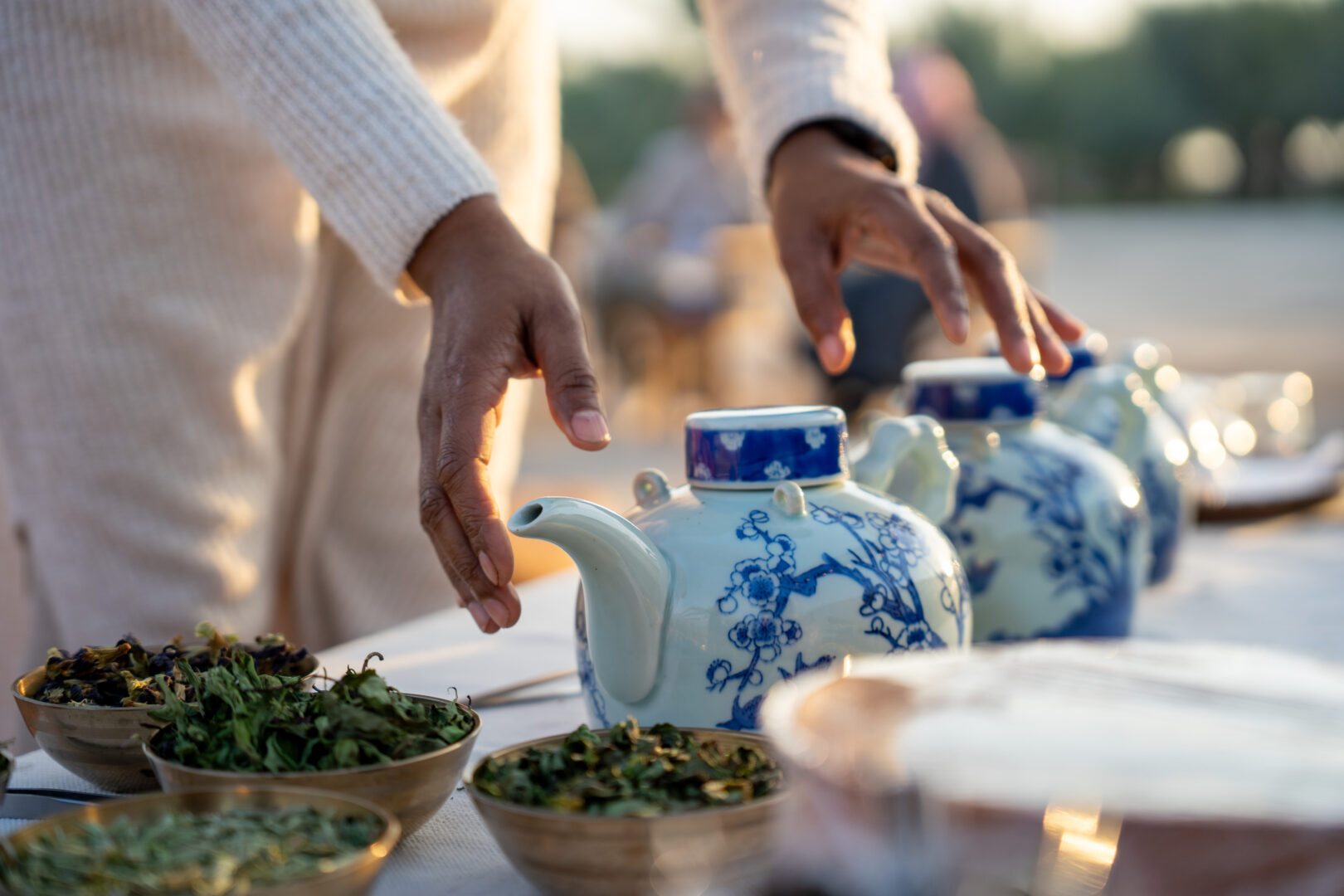 A guided tea moment offered within the nursery environment, highlighting hospitality practices and the social role of tea.