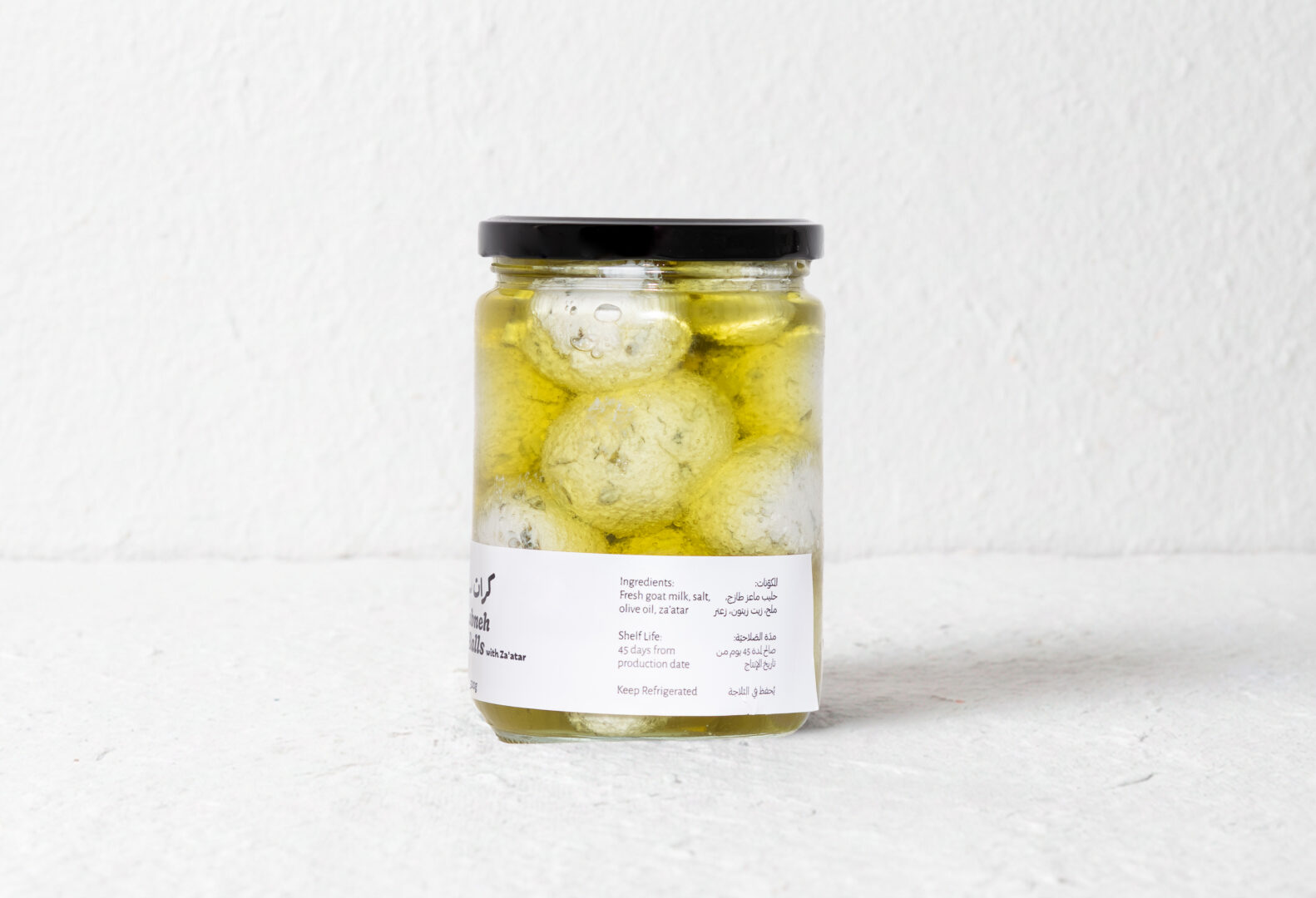 Our Labneh Zaatar Balls are fresh goat milk-hung curd balls flavoured with organic farm-grown zaatar, combining labneh’s tanginess with zaatar’s earthiness. They are a delicious and nutritious product that can be enjoyed as a snack or with bread.