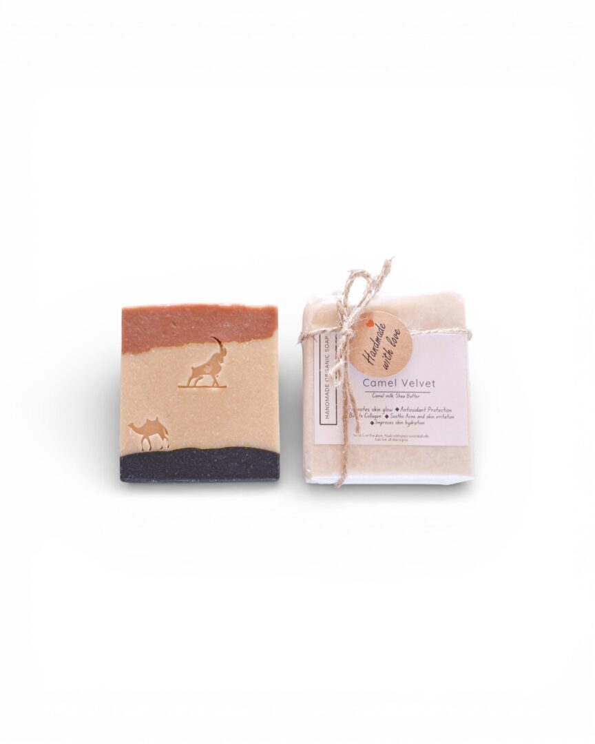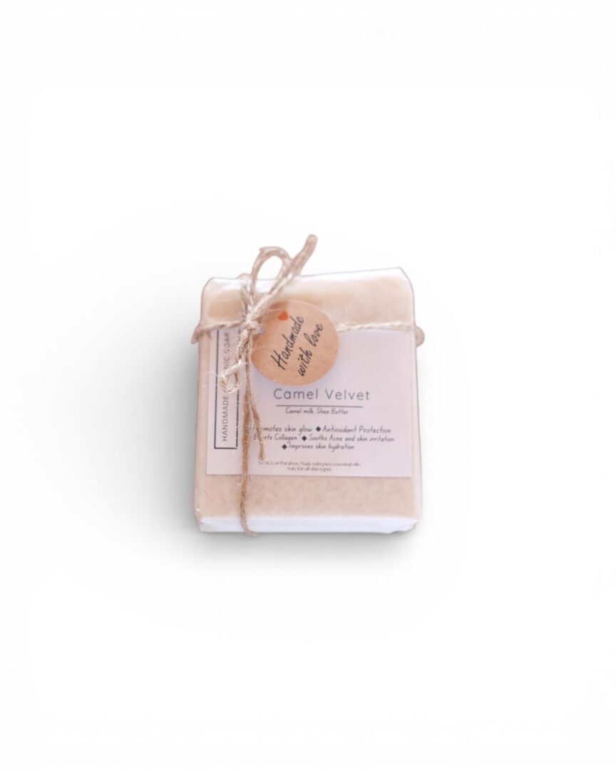 Hand-shaped natural soaps using shea and coco butters as the base, camel milk and different essential oils for the scent.
