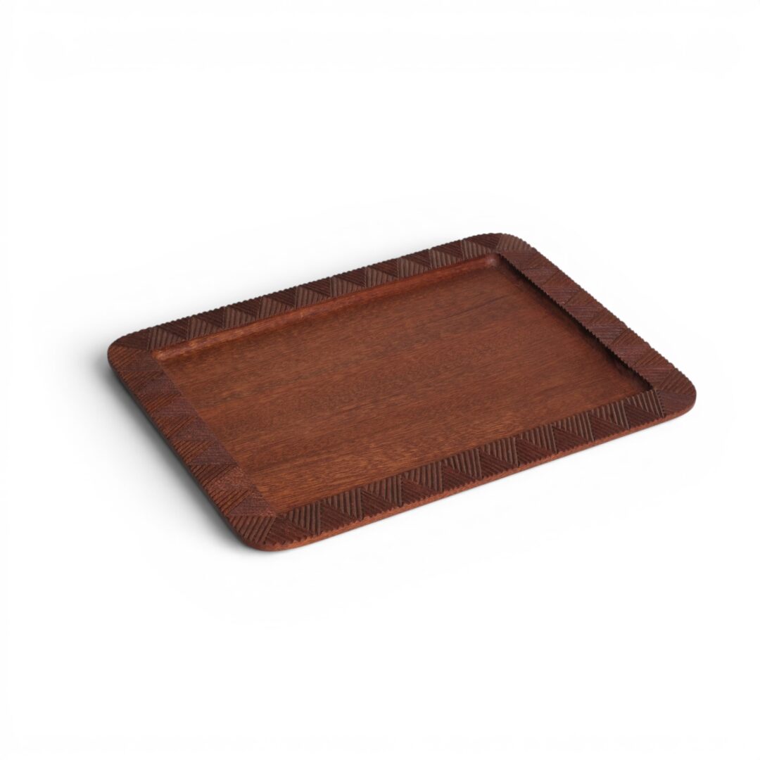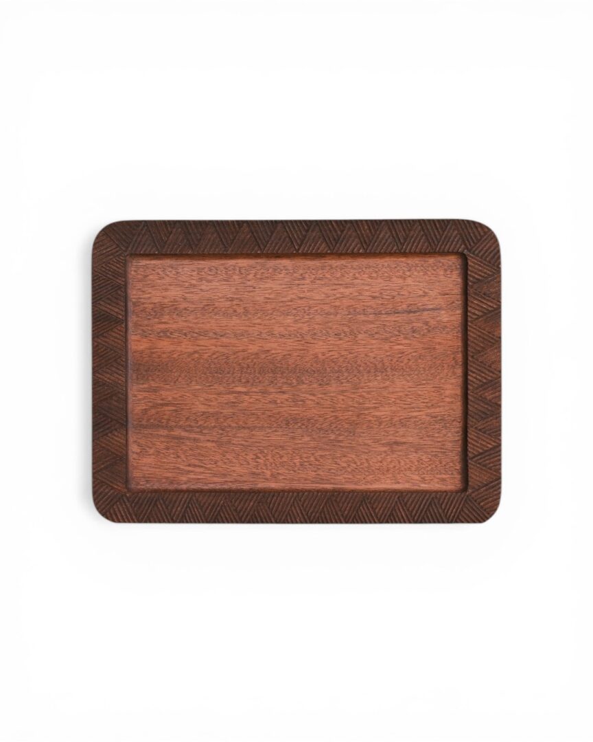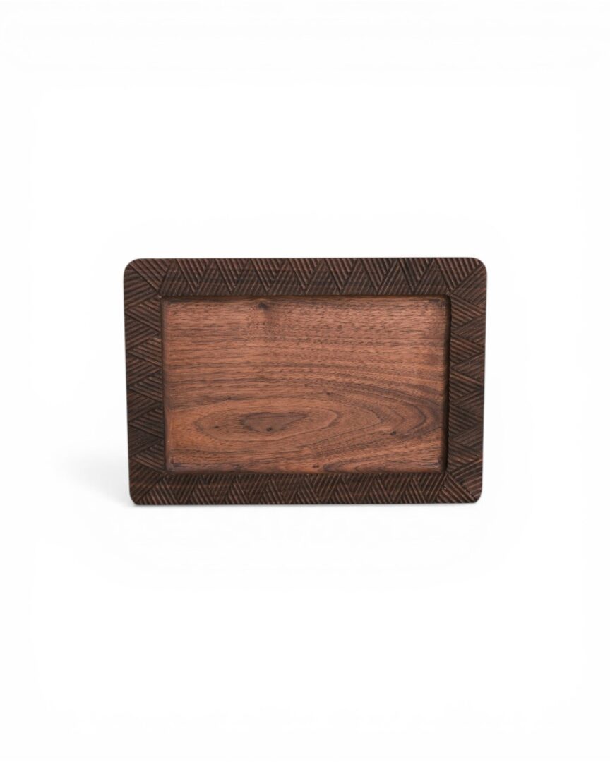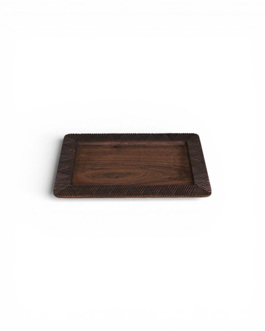 This set of two trays is crafted from solid walnut wood, with hand-carved geometric edges that add depth and character. Designed for versatile use, they bring a refined, timeless touch to serving and display.